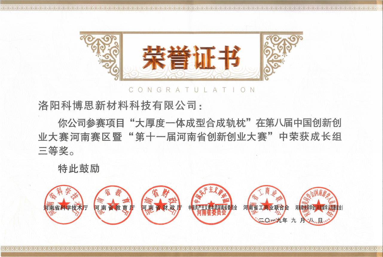 科博思新材榮獲‘第八屆中國創(chuàng)新創(chuàng)業(yè)大賽河南賽區(qū)’三等獎(jiǎng)
