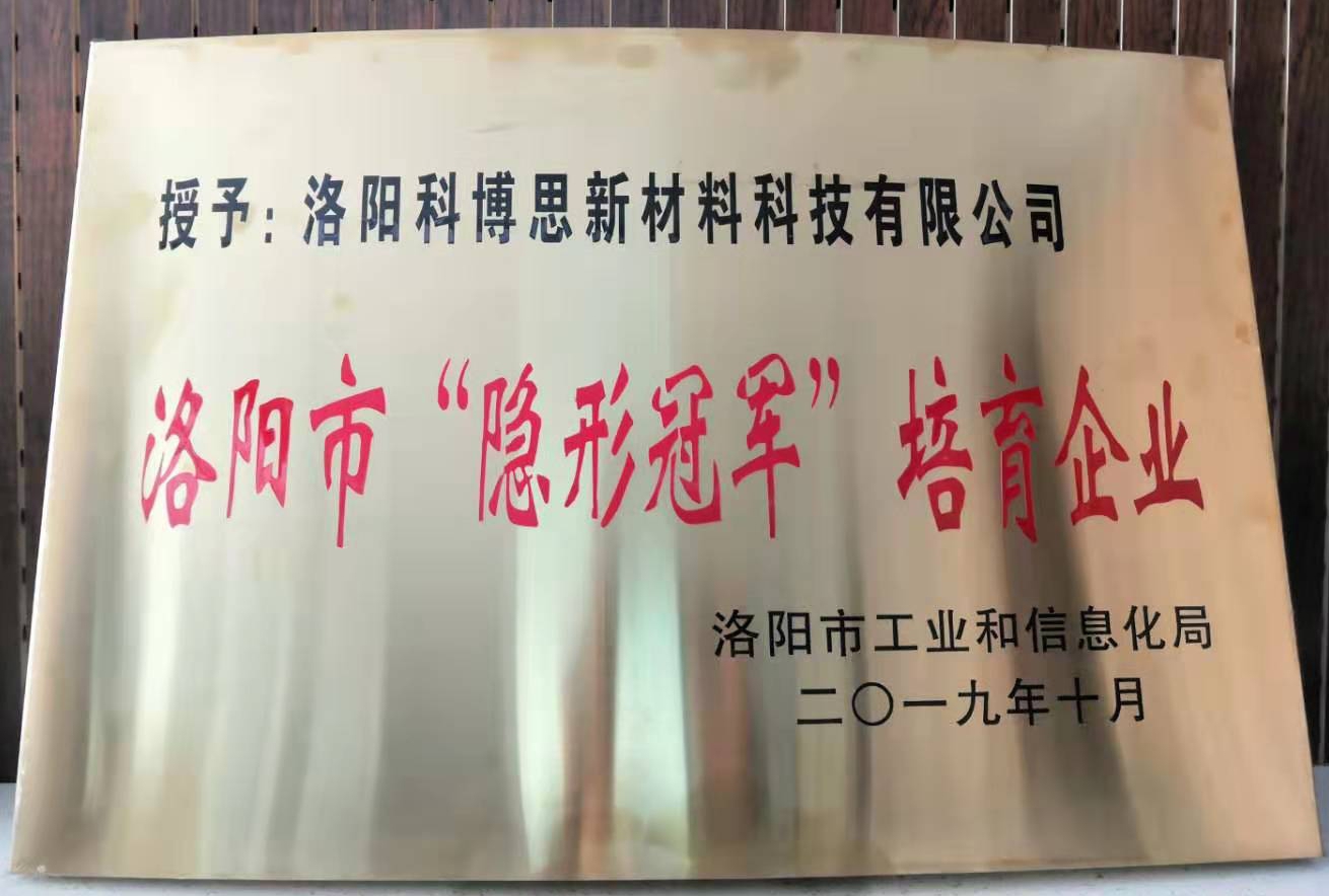11月8日上午,洛陽市工信局組織召開2019年度洛陽市“隱形冠軍”(培育)企業(yè)座談會并舉行授牌儀式,洛陽科博思新材料科技有限公司授予洛陽市“隱形冠軍”培育企業(yè)。